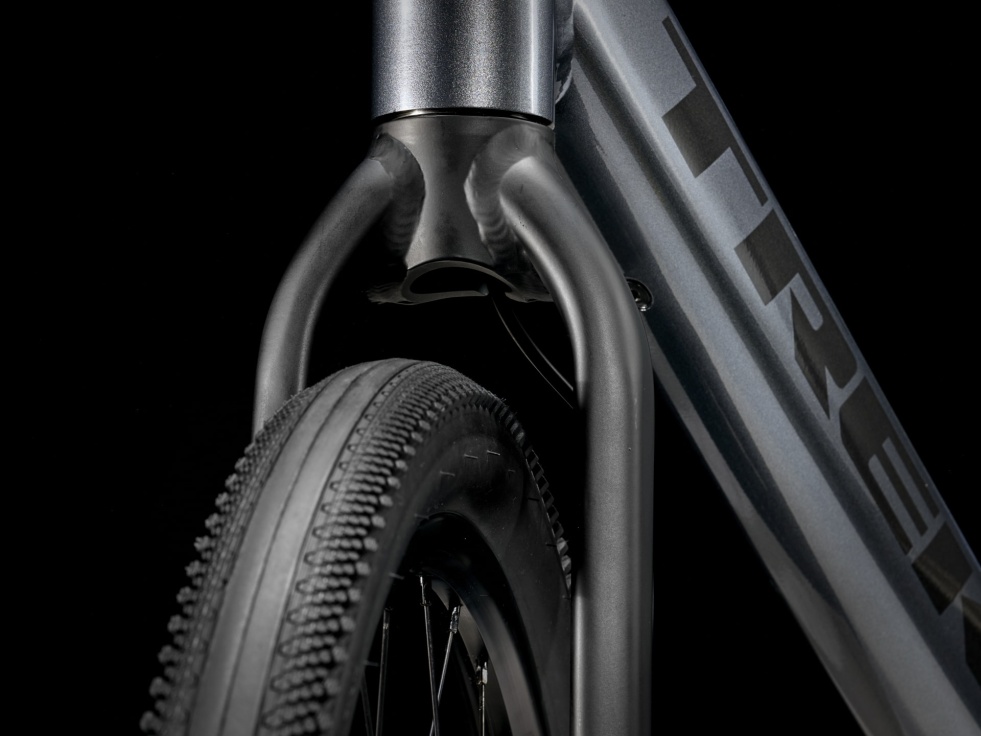 Lehký hliníkový rám a vidlice, patentovaný systém podpory šlapání Trek od značky Hyena s motorem v náboji (250 W, 40 Nm), který poskytuje podporu až do rychlosti 25 km/h, a 250Wh baterie pro dojezd až 55 kilometrů na jedno nabití. Tuhá kola 650b, široké pláště 50c pro výkon a pohodlí na různých površích, spolehlivý 8rychlostní pohon Shimano, hydraulické kotoučové brzdy, integrovaná světla napájená z baterie a stojánek.