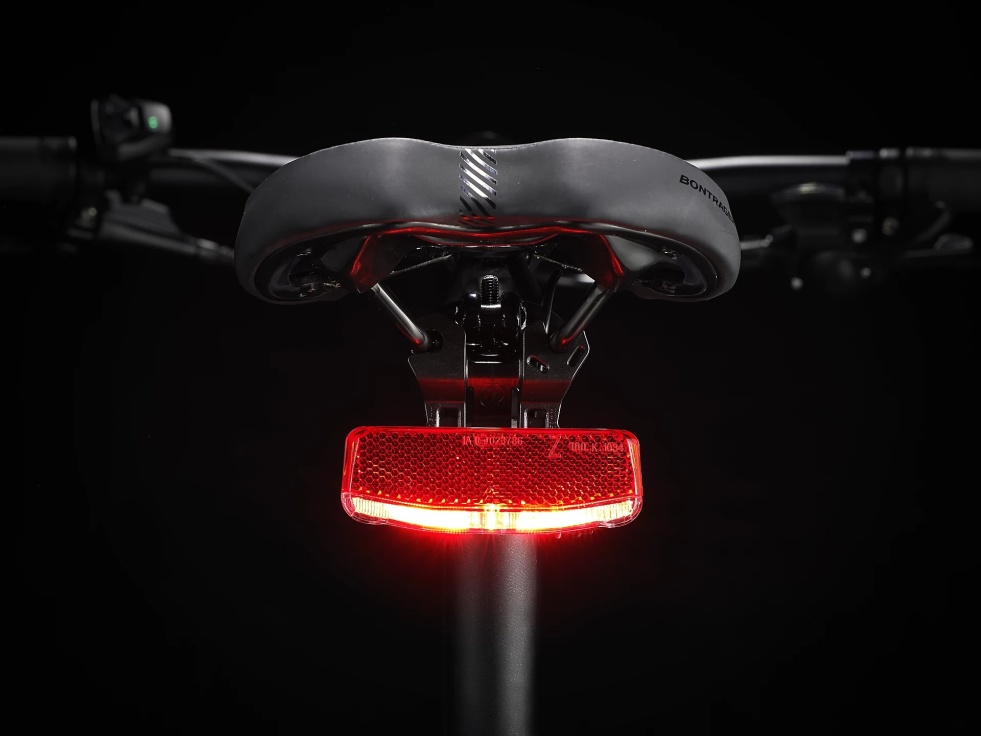 Lehký hliníkový rám se sníženou rámovou trubkou, díky níž je nasednutí i sesednutí ještě snazší, patentovaný systém podpory šlapání Trek s motorem v náboji (250 W, 40 Nm), který poskytuje podporu až do rychlosti 25 km/h, a 250Wh baterie pro dojezd až 55 kilometrů na jedno nabití. Tuhá kola 650b, široké pláště 50c pro výkon a pohodlí na různých površích, spolehlivý 9rychlostní pohon Shimano, hydraulické kotoučové brzdy, integrovaná světla napájená z baterie a stojánek.