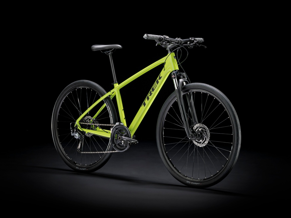 Lehký hliníkový rám Alpha Gold s vnitřním vedením lanek, vidlice SR Suntour NEX se zamykáním, výkonnější pohon 2x9 Shimano se širokým rozsahem převodů, hydraulické kotoučové brzdy Shimano pro brzdný účinek za každého počasí, ráfky umožňující použití bezdušových plášťů, pláště Bontrager GR1 Expert Hard-Case Lite odolné proti propíchnutí, úchyty na nosič a blatníky, kompatibilita s DuoTrap S, ergonomické gripy a představec Blendr pro snadné připevnění příslušenství.