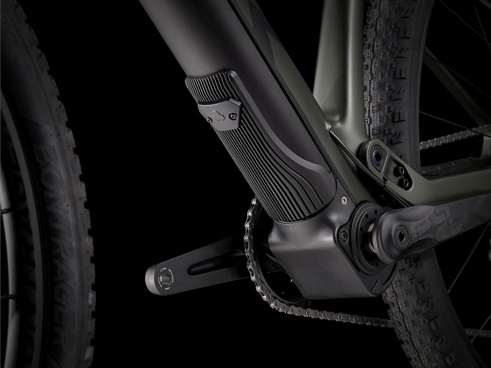 Rám z karbonu OCLV pro horská kola s 60mm zdvihem, 120mm vidlice RockShox Gold RL a tlumič IsoStrut FOX Performance značky Trek. Pohonný systém Fazua Evation nabízí podporu šlapání až do 25 km/h a po jeho vypnutí není cítit žádný odpor. Dále má 12rychlostní řazení Shimano Deore, teleskopickou sedlovku ke snížení sedla při sjezdech a kola Bontrager Kovee Comp 23.
