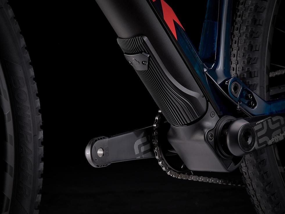 Lehký rám z karbonu OCLV pro horská kola s 60mm zdvihem, 120mm vidlice RockShox SID Select+ a tlumič IsoStrut značky Trek. Motor Fazua Evation a 250Wh baterie zajišťují podporu šlapání do 25 km/h. Po jejich vypnutí není cítit žádný odpor. Pohon Shimano XT, teleskopická sedlovka Bontrager Line Elite a karbonová kola Kovee Pro 30 s 108zubým zadním nábojem Rapid Drive pro okamžitou aktivaci.