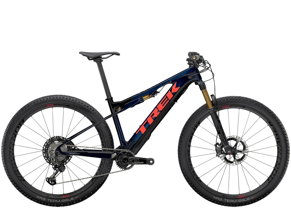 Lehký celokarbonový OCLV rám pro horská kola s 60mm zdvihem, 120mm vidlicí FOX Factory 34 Step-Cast, dvojí vzdálené zamykání a lehký tlumič IsoStrut FOX Factory značky Trek. Motor Fazua Evation a 250Wh baterie zajišťují podporu šlapání do 25 km/h a po jejich vypnutí není cítit žádný odpor. Ovladač Fazua Remote FX je umístěn na řídítkách. Pohon Shimano XTR, karbonová sedlovka Bontrager XXX a karbonová kola Kovee XXX 30.
