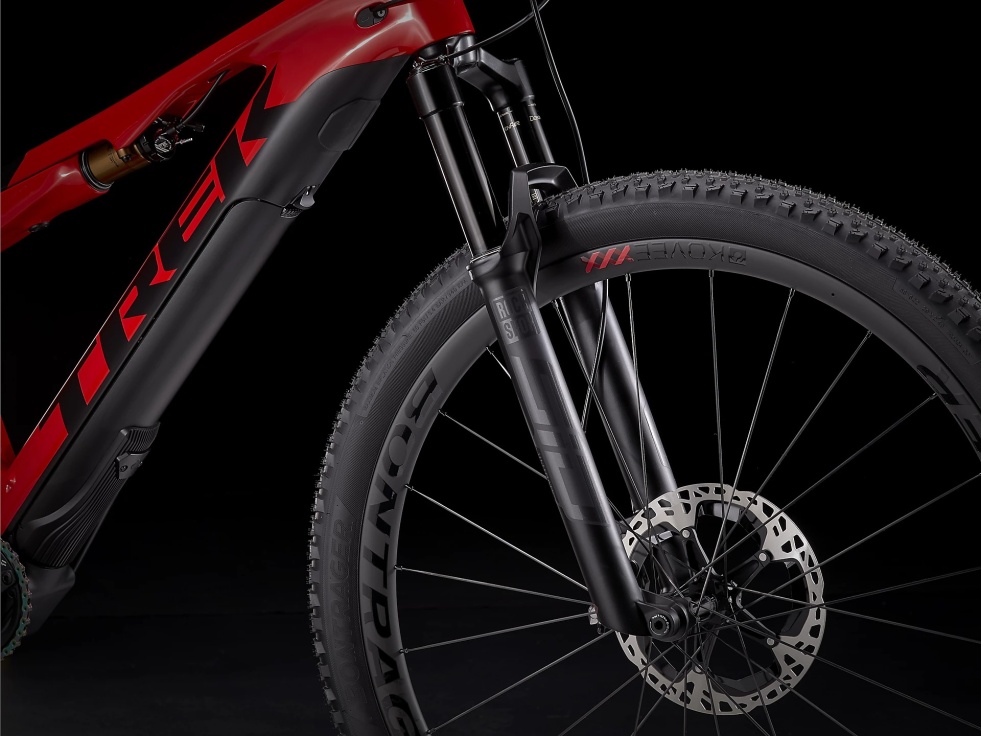 Ultralehký celokarbonový OCLV rám pro horská kola s 60mm zdvihem, 120mm vidlice RockShox SID Ultimate s tlumením Charger Race Day, vzdálené zamykání a lehký tlumič IsoStrut FOX Factory značky Trek. Motor Fazua Evation a 250Wh baterie zajišťují podporu šlapání do 25 km/h a po jejich vypnutí není cítit žádný odpor. Ovladač Fazua Remote FX je umístěn na řídítkách. Bezdrátový elektronický pohon SRAM XX1 Eagle AXS, karbonová sedlovka Bontrager XXX a karbonová kola Kovee XXX 30.