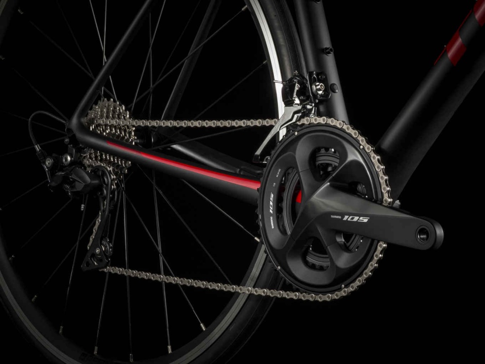 Lehký rám z karbonu OCLV řady 500, plná sada komponent 2x11 Shimano 105, výkonné ráfkové brzdy Shimano 105 pro přímou montáž, slitinový sedlový nástavec optimalizovaný pro jízdu, vnitřní vedení lanek pro elegantní vzhled a kola Bontrager Affinity umožňující použití bezdušových plášťů.