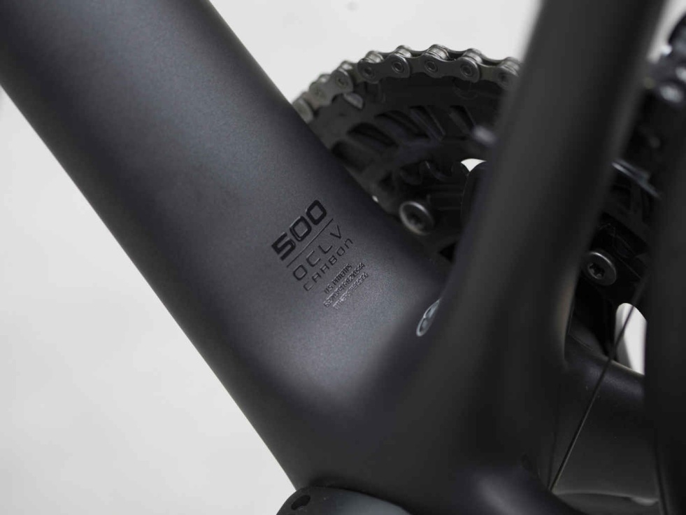 Rám Karbon OCLV ultralehké řady 500, optimalizované trubky pro vysoký výkon, kónická hlavová trubka E2, BB90, brzdy pro přímou montáž, vnitřní vedení kabeláže, kompatibilní s technologií DuoTrap S, sedlovka optimalizovaná pro jízdu