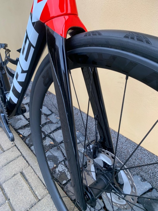| Vidlice | Celokarbonová Émonda SL, kónický karbonový sloupek, vnitřní vedení brzdových lanek, kotouč s úchytem Flat Mount, pevná osa 12 × 100 mm. |