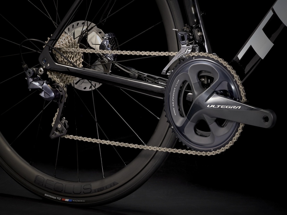 Lehký rám a vidlice z karbonu OCLV řady 500, karbonová kola Bontrager Aeolus Elite 35, kompletní 11rychlostní sada Shimano Ultegra a účinné kotoučové brzdy Ultegra.