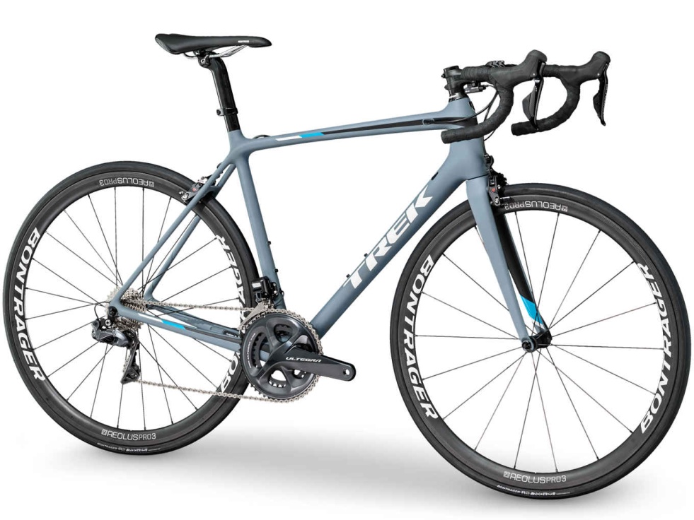 Plná elektronická sada komponent Shimano Ultegra Di2 s 11 rychlostmi, karbonová kola Bontrager Aeolus Pro 3, výkonné brzdy Bontrager Speed Stop pro přímou montáž a velmi lehký rám z karbonu OCLV řady 500.