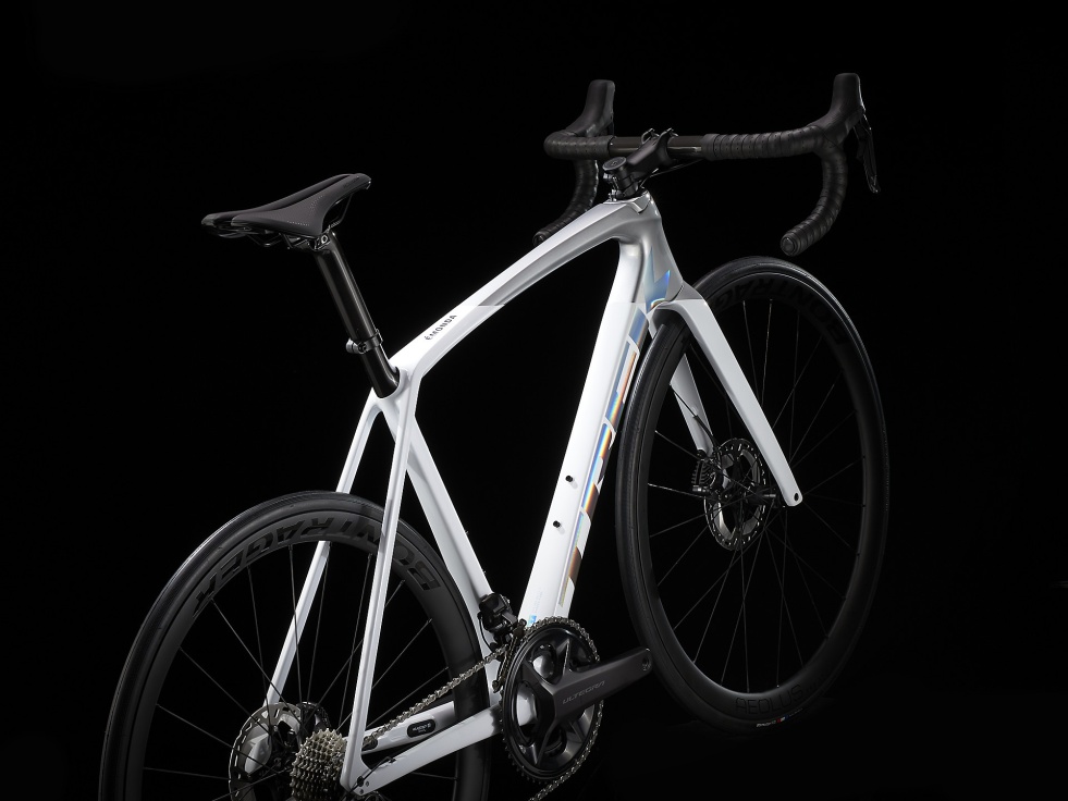 Lehký aerodynamický rám a vidlice z karbonu OCLV řady 500, nový bezdrátový elektronický pohon Shimano Ultegra Di2 2x12, karbonová kola Bontrager Aeolus Pro 37 a hydraulické kotoučové brzdy Shimano Ultegra s úchytem Flat Mount.