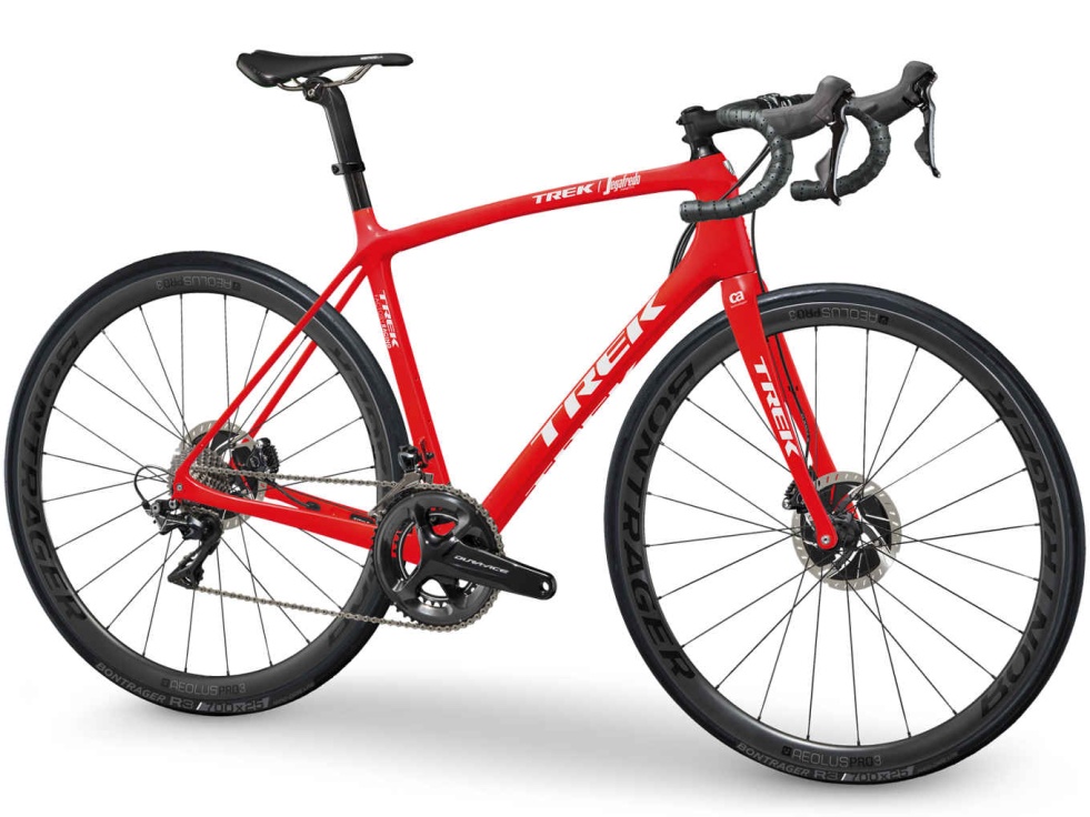Émonda SLR 8 Disc je ultralehké závodní kolo s profesionálními díly a kotoučovými brzdami pro lepší brzdný účinek a ovladatelnost. Má náš nejlehčí OCLV karbonový rám, plnou sadu mechanických komponent Dura-Ace a karbonová kola Bontrager Aeolus Pro 3 Disc.