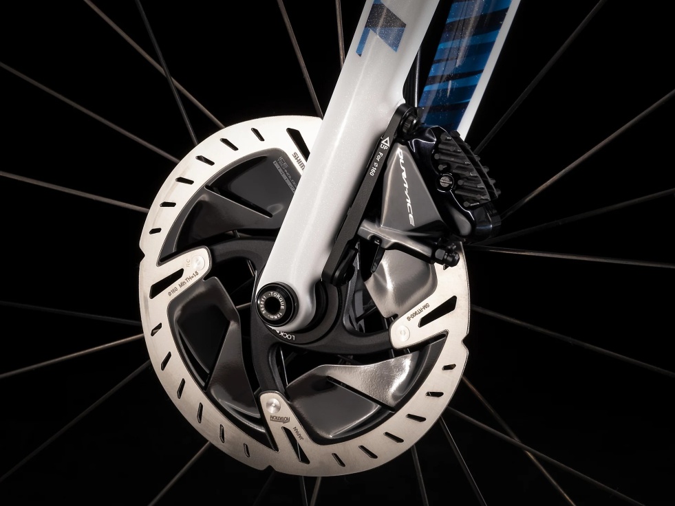 | Vidlice | Celokarbonová Émonda SLR, kónický karbonový sloupek, vnitřní vedení brzdových lanek, kotouč s úchytem Flat Mount, pevná osa 12 × 100 mm. |