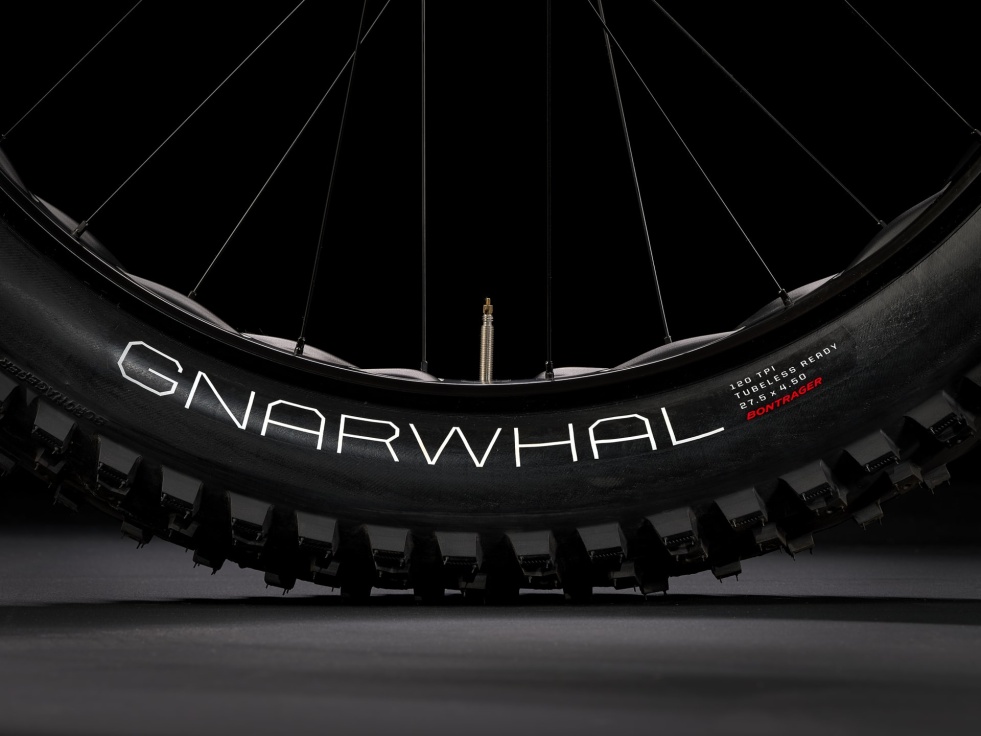 Plášť Bontrager Gnarwhal Team Issue, možnost použít bezdušové pláště i hroty, bočnice Inner Strength, aramidová patka, 120 tpi, 27,5 × 4,5 palce