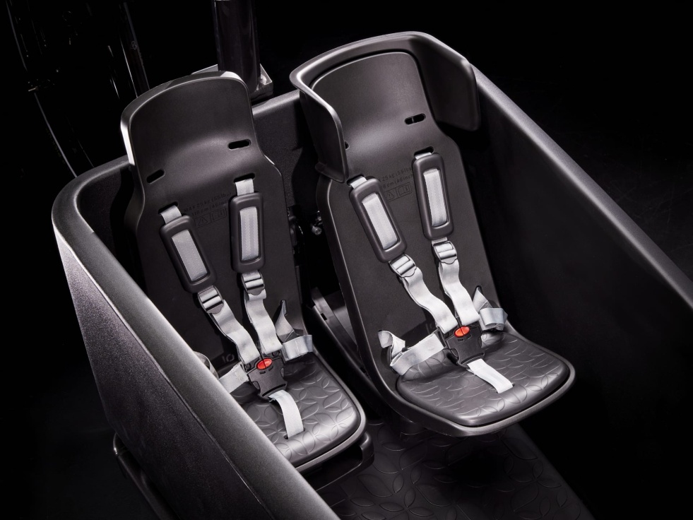 Bytelný hliníkový rám s nastavitelnou konfigurací lavičky a dvou dětských sedaček v předním boxu. Chytrý systém Bosch Performance Line Cargo (250 W, 85 Nm) pro podporu šlapání až do 25 km/h a 750Wh baterie. Ovladač chytrého telefonu s bezdrátovým nabíjením. Řemenový pohon Gates CDX a náboj CVT s nízkými nároky na údržbu pro hladké řazení. Odpružená vidlice, 4pístkové hydraulické brzdy, nastavitelná teleskopická sedlovka, zadní nosič MIK HD, stabilní stojánek a Bosch BCM pro lepší ochranu proti krádeži.