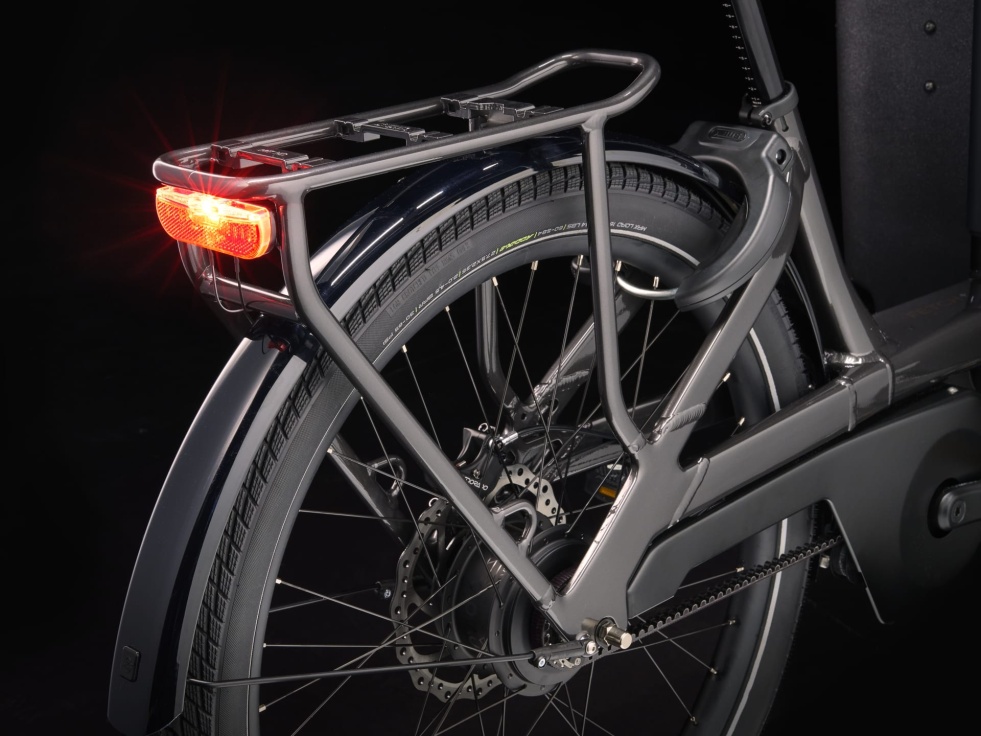 Bytelný hliníkový rám s nastavitelnou konfigurací lavičky a dvou dětských sedaček v předním boxu. Chytrý systém Bosch Performance Line Cargo (250 W, 85 Nm) pro podporu šlapání až do 25 km/h a 750Wh baterie. Ovladač chytrého telefonu s bezdrátovým nabíjením. Řemenový pohon Gates CDX a náboj CVT s nízkými nároky na údržbu pro hladké řazení. Odpružená vidlice, 4pístkové hydraulické brzdy, nastavitelná teleskopická sedlovka, zadní nosič MIK HD, stabilní stojánek a Bosch BCM pro lepší ochranu proti krádeži.