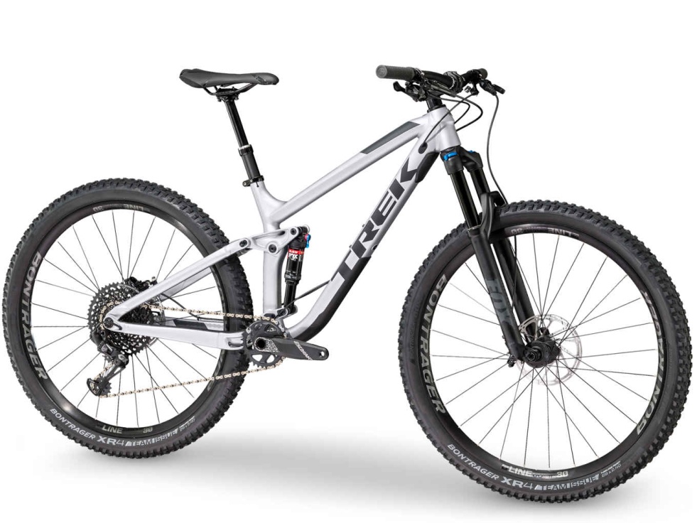 Lehký hliníkový rám Alpha Platinum, řazení SRAM GX Eagle 1x12 s kazetou 10-50 se širokým rozsahem, kola Bontrager Line Comp 30 připravená na použití bezdušových plášťů s 54zubým nábojem Rapid Drive pro rychlou aktivaci a teleskopická sedlovka pro úpravy výšky sedla v terénu. 130mm přední a zadní odpružení FOC s tlumičem RE:aktiv značky Trek je dostatečně výkonné a zároveň zachovává rychlost na rovinkách a výšlapech.