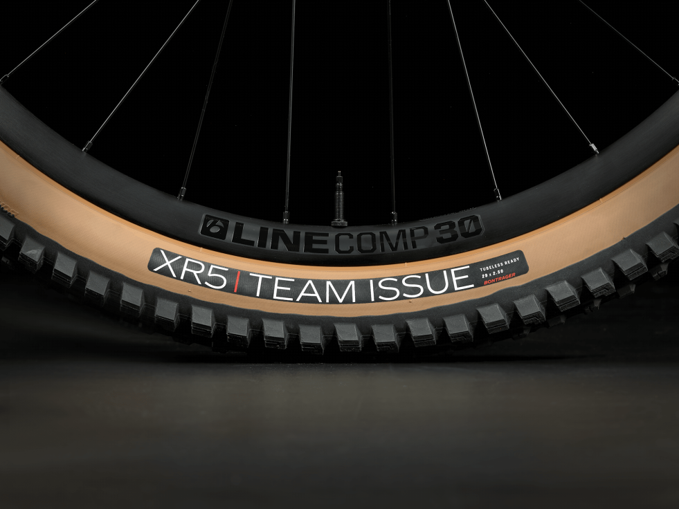 Plášť : Velikost: XS , S Bontrager XR5 Team Issue, možnost použití bezdušových plášťů, odolná vrstva Inner Strength, aramidová patka, 60 tpi, 27,5 × 2,50 palce. / Velikost: M , ML , L , XL , XXL Bontrager XR5 Team Issue, možnost použití bezdušových plášťů, odolná vrstva Inner Strength, aramidová patka, 60 tpi, 29 × 2,50 palce.