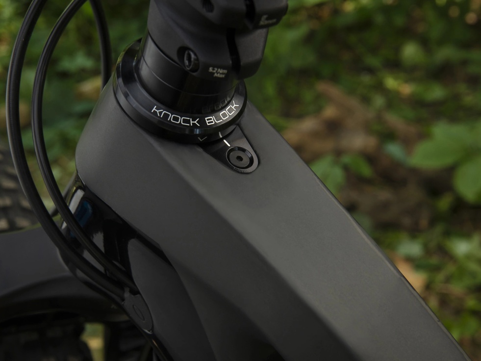 Rám Hlavní rám a vzpěry z karbonu OCLV pro horská kola, vnitřní úložiště BITS, kónická hlavová trubka, Knock Block, vnitřní vedení lanek Control Freak, ochrana Carbon Armor, ISCG 05, hořčíkový kolébkový spoj, Mino Link, ABP, Boost148, zdvih 130 mm.