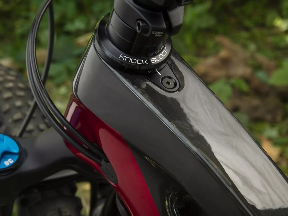 Rám Hlavní rám a vzpěry z karbonu OCLV pro horská kola, vnitřní úložiště BITS, kónická hlavová trubka, Knock Block, vnitřní vedení lanek Control Freak, ochrana Carbon Armor, ISCG 05, hořčíkový kolébkový spoj, Mino Link, ABP, Boost148, zdvih 130 mm.