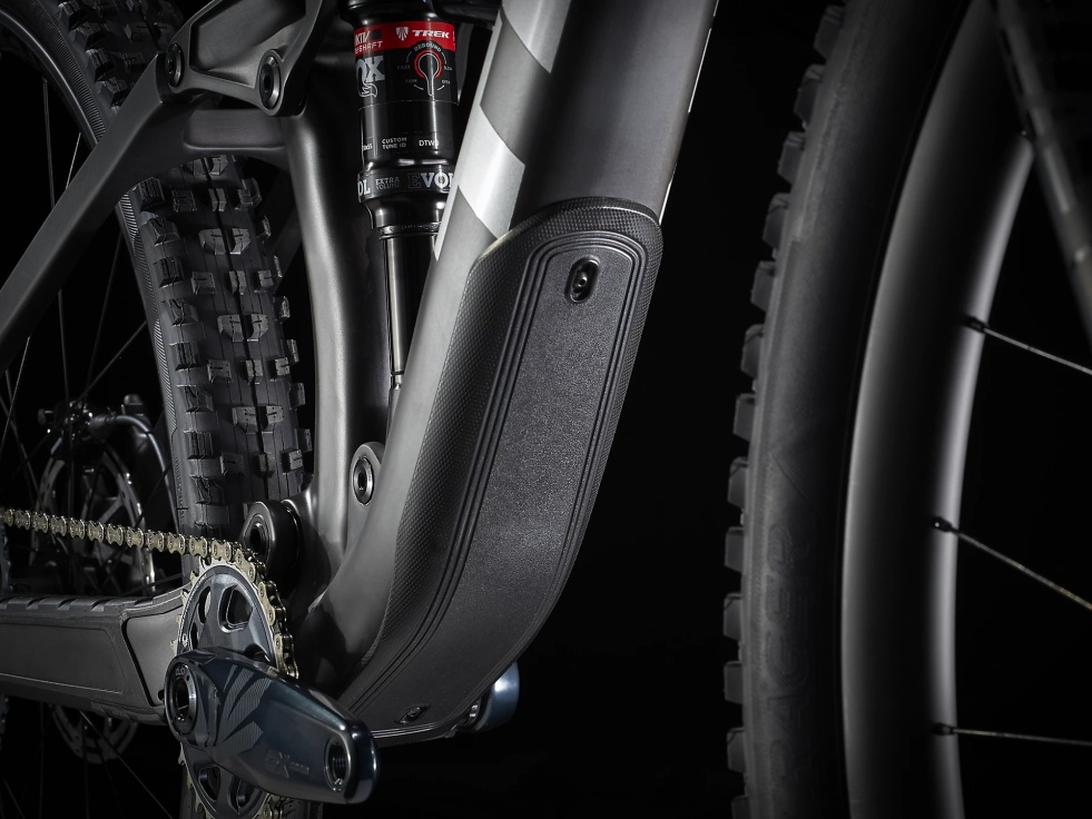 Lehký a tuhý celokarbonový rám s vnitřním úložným prostorem, vidlice FOX Performance 36 s tlumičem GRIP s lepším doladěním a tlumič RE:aktiv s Thru Shaft. Nejnovější bezdrátový elektronický pohon SRAM GX Eagle AXS s 52zubým převodem do stoupání, díky němuž ušetříte energii, zbrusu nová karbonová kola Bontrager s 108zubým nábojem Rapid Drive s rychlou aktivací a výkonné 4pístkové brzdy.