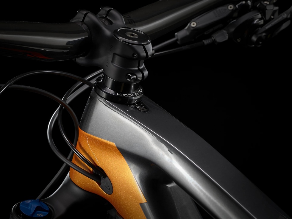 Lehký a tuhý celokarbonový rám s vnitřním úložným prostorem, vidlice FOX Performance 36 se širšími sloupky pro větší tuhost v drsném terénu a tlumič RE:aktiv s Thru Shaft. Pohon SRAM GX Eagle s 52zubým převodem na stoupání, díky němuž ušetříte energii, a karbonová kola Bontrager s 108zubým nábojem Rapid Drive s okamžitou aktivací.