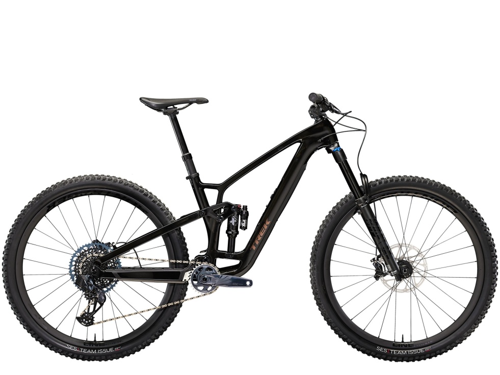 Je osazeno nejnovější technologií jako např. pohonem SRAM GX AXS, který je velmi elegantní a lze si ho nastavit podle vlastních představ. 150mm přední a 140mm zadní odpružení zajišťují ovladatelnost i na těch nejnáročnějších trailech. Vše doplňují karbonová kola Bontrager s rychlými náboji.