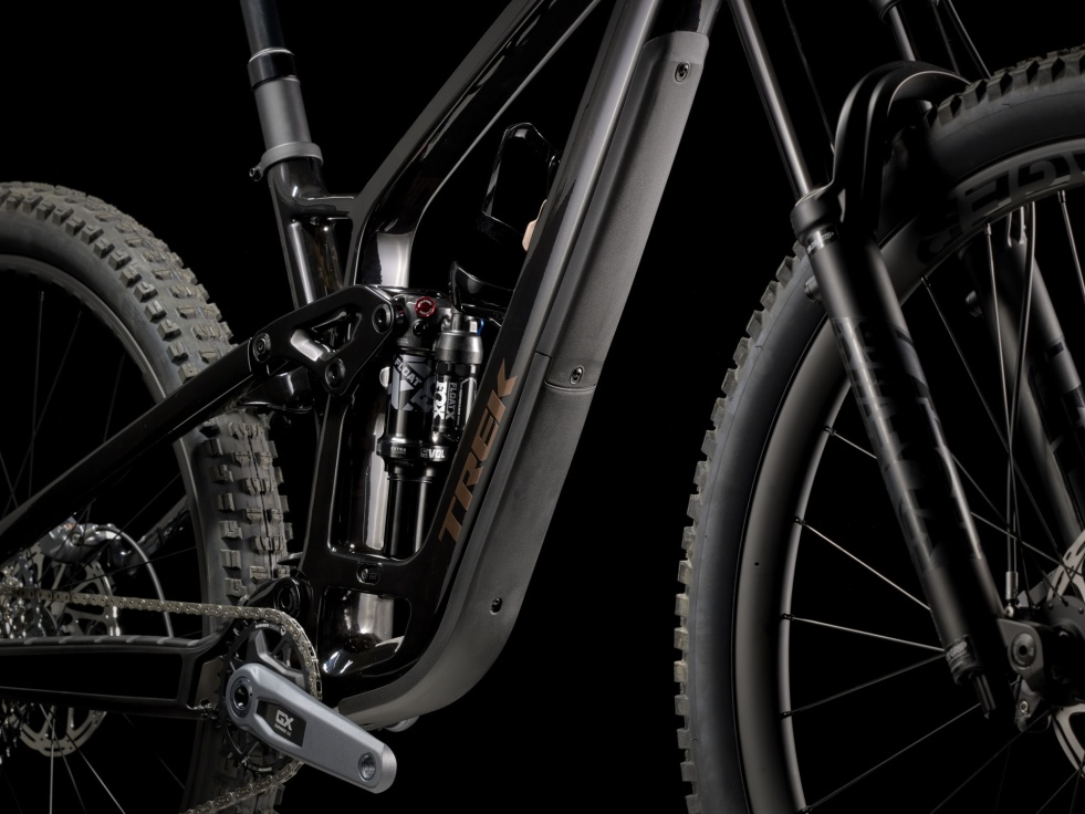 Je vybaveno potřebnými technologiemi, jako je např. bezdrátová sada SRAM GX AXS pro velmi spolehlivé řazení při zatížení, a dále sadou odpružení FOX Performance se zdvihem 150 mm vpředu a 140 mm vzadu, které vyhladí i ty nejdrsnější traily. Třešničkou jsou karbonová kola Bontrager, která jsou lehká a skvěle drží stopu.