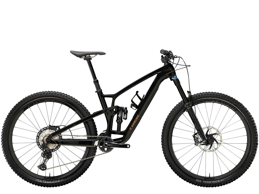 Plášť : Velikost: XS , S Bontrager SE5 Team Issue, možnost použití bezdušových plášťů, bočnice Core Strength, aramidová patka, 120 tpi, 27,5 × 2,50 palce. / Velikost: S , M , ML , L , XL Bontrager SE5 Team Issue, umožňující použití bezdušových plášťů, bočnice Core Strength, aramidová patka, 120 tpi, 29 × 2,50 palce.