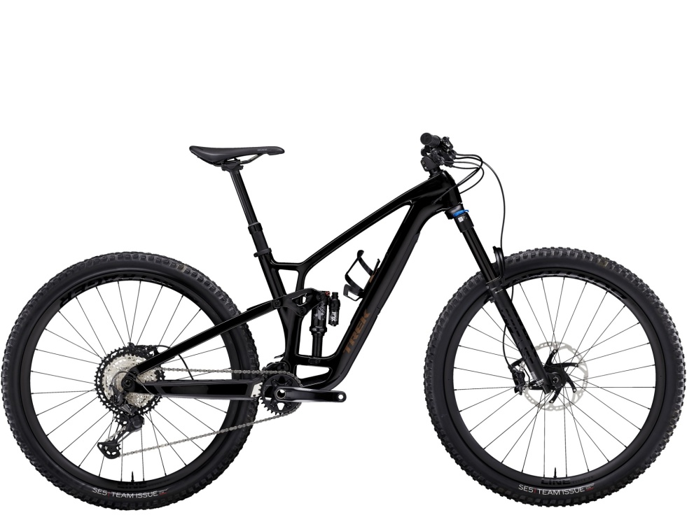 Plášť : Velikost: XS , S Bontrager SE5 Team Issue, možnost použití bezdušových plášťů, bočnice Core Strength, aramidová patka, 60 tpi, 27,5 × 2,50 palce. / Velikost: S , M , ML , L , XL Bontrager SE5 Team Issue, možnost použití bezdušových plášťů, bočnice Core Strength, aramidová patka, 60 tpi, 29 × 2,50 palce.