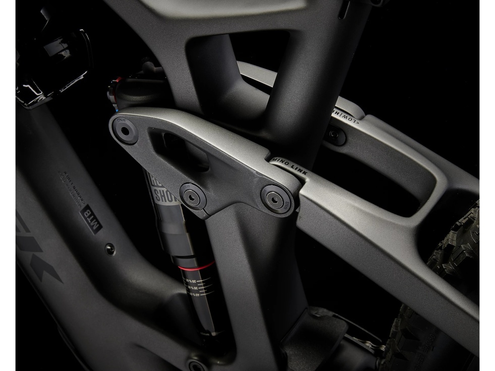 Rám Karbon OCLV pro horská kola, vyjímatelná baterie, vnitřní vedení lanek, slitinou kolébkový spoj, 34,9mm sedlová trubka, úchyt na horní vodítko řetězu, 55mm řetězová linka, Mino Link, ABP, Boost148, UDH, 140mm zdvih