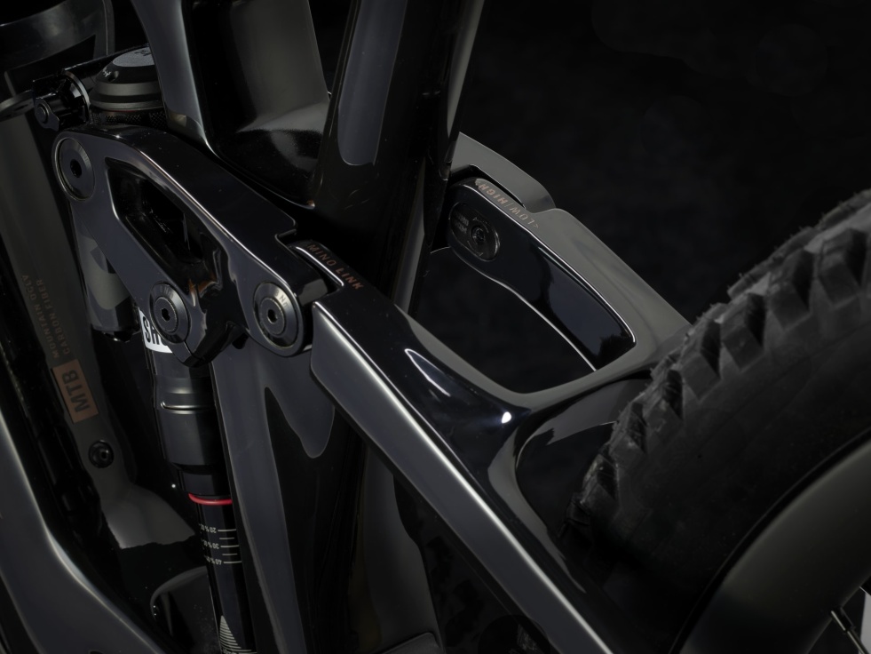 Rám Karbon OCLV pro horská kola, vyjímatelná baterie, vnitřní vedení lanek, slitinový kolébkový spoj, 34,9mm sedlová trubka, úchyt na horní vodítko řetězu, 55mm řetězová linka, Mino Link, ABP, Boost148, UDH, zdvih 140 mm.