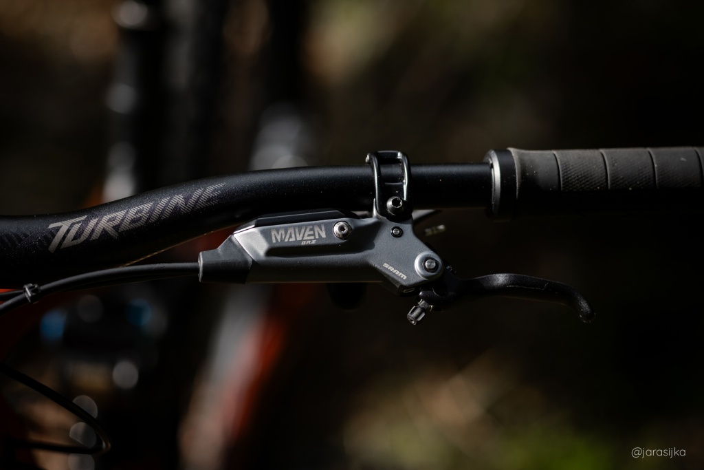 | Brake | : Velikost: S, XL, L, M SRAM Maven Bronze, čtyřpístkové hydraulické kotoučové. |