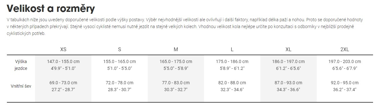 | Hmotnostní limit | Kolo má maximální celkový hmotnostní limit 136 kg (kombinovaná hmotnost kola, jezdce a nákladu). |