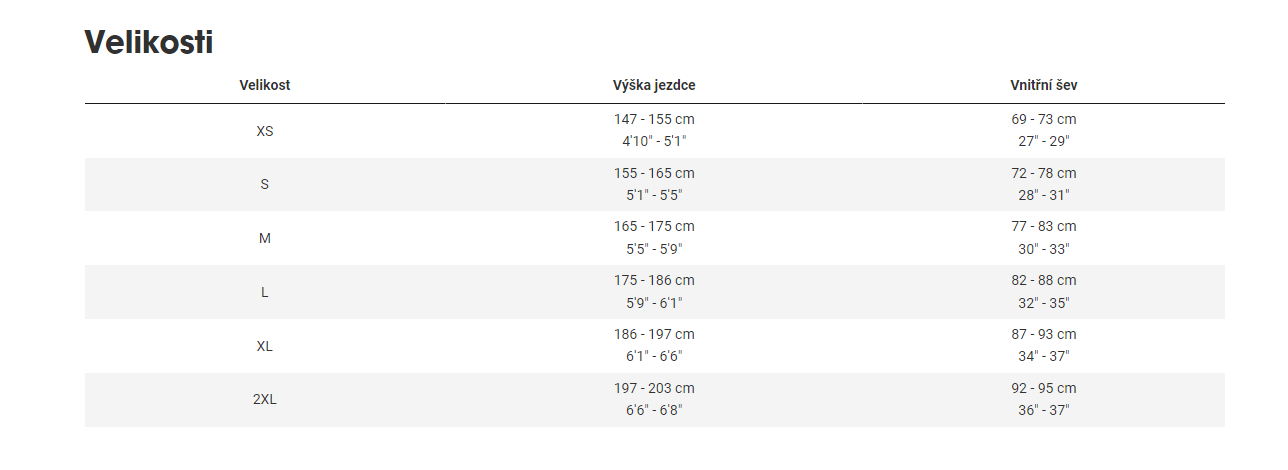 | Řídítka | : Velikost: XS, S, M Slitina, Bontrager, 31,8 mm, prohnutí 15 mm, šířka 600 mm. / Velikost: L, XL, XXL Slitina, Bontrager, 31,8 mm, prohnutí 15 mm, šířka 660 mm. |