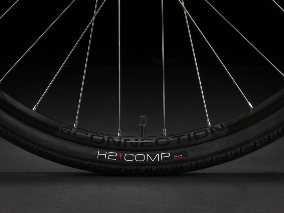 | Plášť | Bontrager H2 Comp, drátová patka, 30 tpi, 700 × 35 mm. |