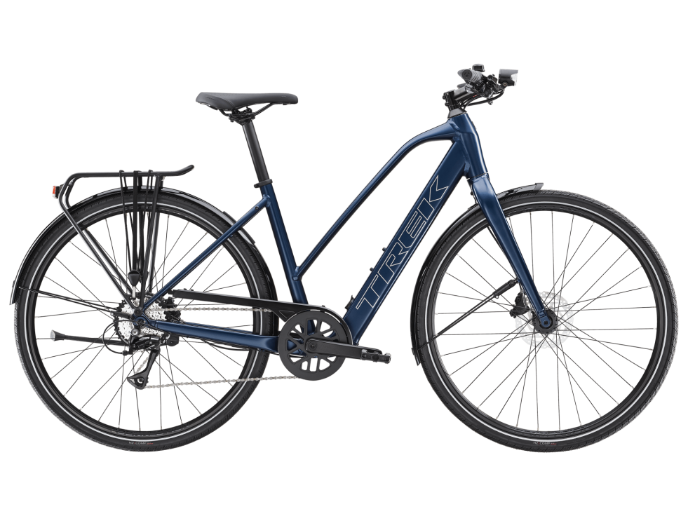 Lehký hliníkový rám a vidlice, patentovaný systém podpory šlapání Trek od značky Hyena s motorem v náboji (250 W, 40 Nm), který poskytuje podporu až do rychlosti 25 km/h, a 250Wh baterie pro dojezd až 55 kilometrů na jedno nabití. Navíc rychlá kola 700c, rychlé a přitom stabilní pláště 40c s reflexními bočnicemi, spolehlivý 8rychlostní pohon Shimano, hydraulické kotoučové brzdy, integrovaná světla napájená z baterie, zadní nosič kompatibilní se systémem MIK, blatníky a stojánek.