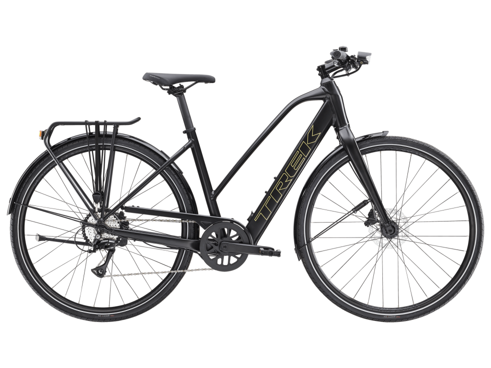 Lehký hliníkový rám a vidlice, patentovaný systém podpory šlapání Trek od značky Hyena s motorem v náboji (250 W, 40 Nm), který poskytuje podporu až do rychlosti 25 km/h, a 250Wh baterie pro dojezd až 55 kilometrů na jedno nabití. Navíc rychlá kola 700c, rychlé a přitom stabilní pláště 40c s reflexními bočnicemi, spolehlivý 8rychlostní pohon Shimano, hydraulické kotoučové brzdy, integrovaná světla napájená z baterie, zadní nosič kompatibilní se systémem MIK, blatníky a stojánek.