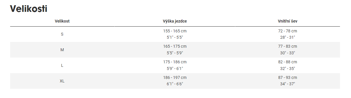 | Řídítka | : Velikost: S, M, L Slitina, Bontrager, 31,8 mm, prohnutí 15 mm, šířka 600 mm. / Velikost: XL Slitina, Bontrager, 31,8 mm, prohnutí 15 mm, šířka 660 mm. |