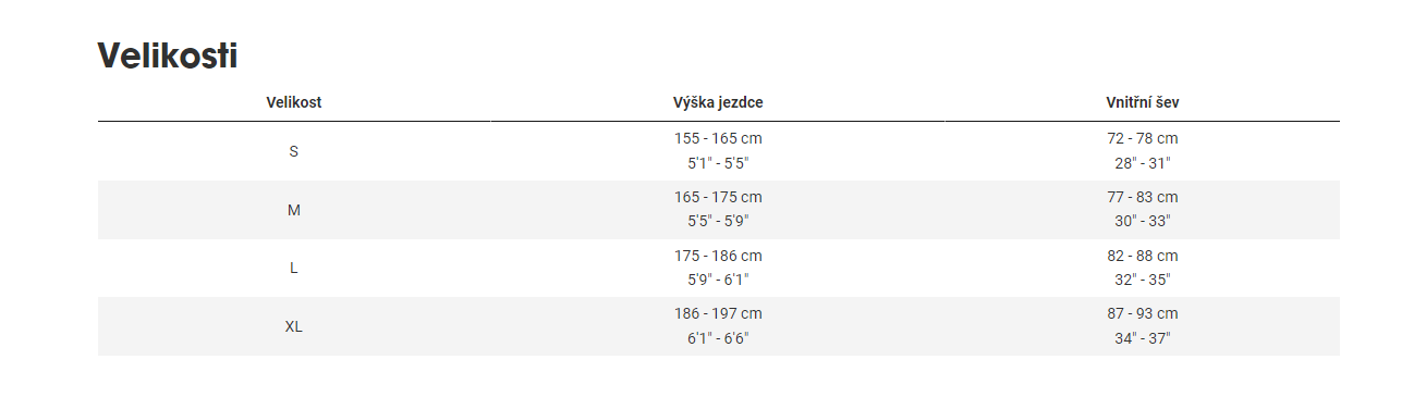 | Zadní rychloupínák | 152 × 5 mm rychloupínák. |