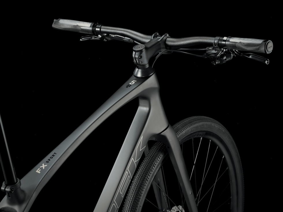 FX Sport 5 je karbonové fitness kolo pro jezdce, kteří požadují rychlost lehkého silničního kola a pohodlí a ovladatelnost rovných řídítek.