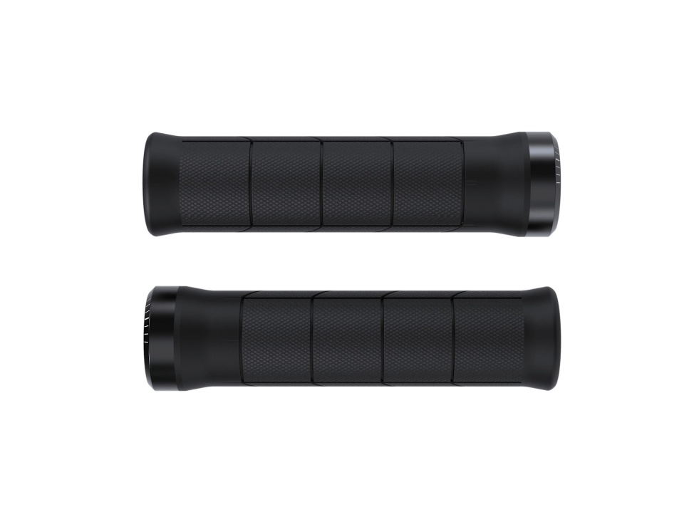 Uzamykatelný MTB grip s jednou objímkou z měkké směsi má strategické výřezy v jádru pro větší pohodlí a ovladatelnost.