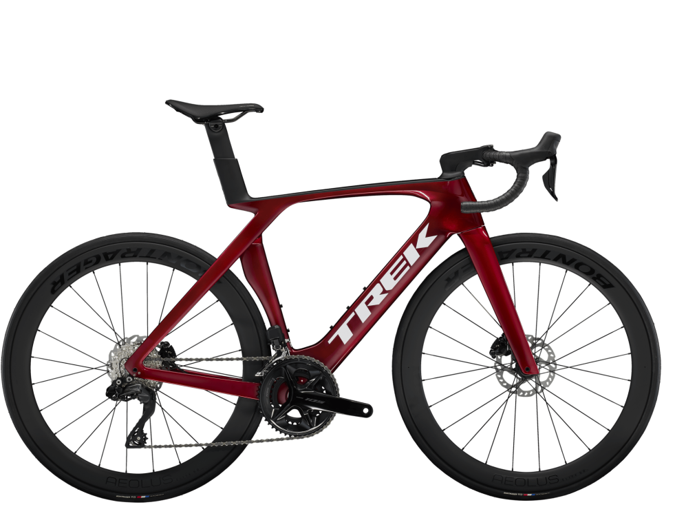 Rám z karbonu OCLV řady 500 s aerodynamickým profilem trubek Kammtail a revoluční sedlovou trubkou IsoFlow, skryté vedení kabelů, neuvěřitelně svižný 12rychlostní elektronický pohon Shimano 105 Di2, aerodynamická řídítka Bontrager RSL z karbonu OCLV a karbonová kola Bontrager Aeolus Elite 50 umožňující použití bezdušových plášťů.