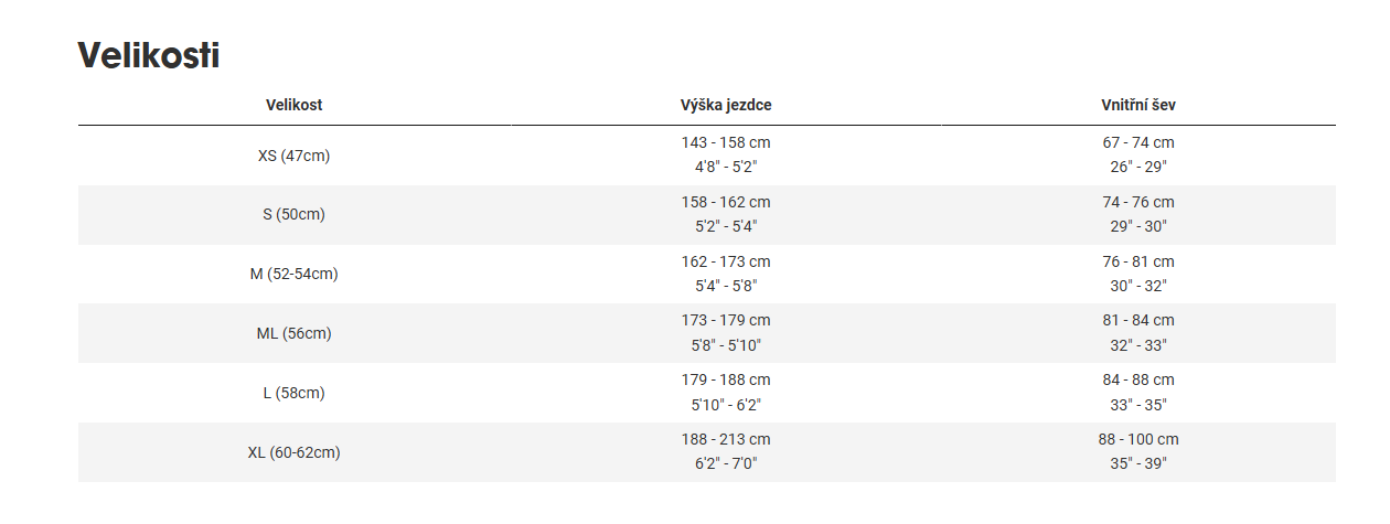 | Handlebar | : Velikost: XS Bontrager Comp, slitina, 31,8 mm, dosah 80 mm, oblouk 121 mm, šířka mezi pákami 36 cm, šířka mezi oblouky 40 cm. / Velikost: S, M Bontrager Comp, slitina, 31,8 mm, dosah 80 mm, oblouk 121 mm, šířka mezi pákami 38 cm, šířka mezi oblouky 42 cm. / Velikost: L, ML Bontrager Comp, slitina, 31,8 mm, dosah 80 mm, oblouk 121 mm, šířka mezi pákami 40 cm, šířka mezi oblouky 44 cm. / Velikost: XL Bontrager Comp, slitina, 31,8 mm, dosah 80 mm, oblouk 121 mm, šířka mezi pákami 42 cm, šířka mezi oblouky 46 cm. |