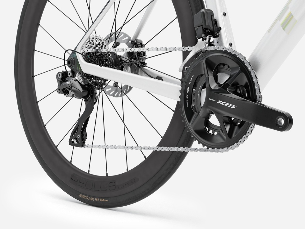Madone SL 6 Gen 8 je lehké aerodynamické silniční kolo se špičkovou závodní technologií za příznivější cenu, které je však ve srovnání s modelem SLR vyrobeno z cenově příznivějšího karbonu OCLV řady 500. Elektronická sada Shimano 105 Di2 bleskově řadí. Doplňují ji slitinová řídítka za dostupnější cenu. Celek završují karbonová kola pro výkon při zachování nízké hmotnosti.
