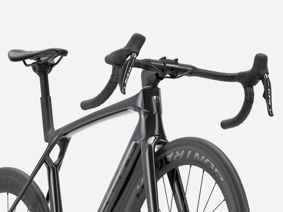 Madone SL 6 Gen 8 je lehké aerodynamické silniční kolo se špičkovou závodní technologií za příznivější cenu, které je však ve srovnání s modelem SLR vyrobeno z cenově příznivějšího karbonu OCLV řady 500. Elektronická sada Shimano 105 Di2 bleskově řadí. Doplňují ji slitinová řídítka za dostupnější cenu. Celek završují karbonová kola pro výkon při zachování nízké hmotnosti.