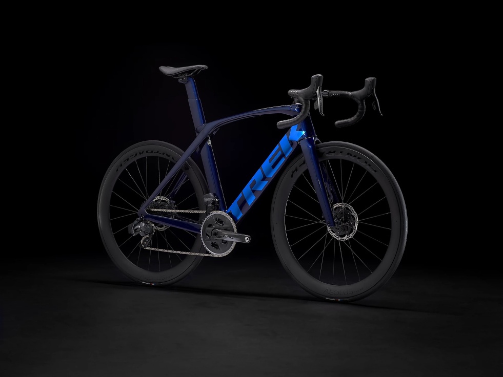 Rám z karbonu OCLV řady 500, vidlice s profilem Kammtail Virtual Foil, která si hravě poradí s větrem, a tlumicí prvek IsoSpeed vyhlazující nerovnosti. Bezdrátový elektronický pohon SRAM Force eTap AXS 2x12, hydraulické kotoučové brzdy, měřič výkonu SRAM Force AXS, aerodynamická řídítka kompatibilní s aerodynamickými nástavci a sada kol Bontrager Aeolus Pro 5 z karbonu OCLV připravená na bezdušový systém.