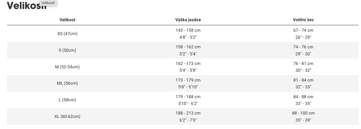 Představec Velikost XS – Trek RCS Pro, –7 stupňů, délka 80 mm.// Velikost S, M – Trek RCS Pro, –7 stupňů, délka 90 mm.// Velikost ML, L – Trek RCS Pro, –7 stupňů, délka 100 mm.// Velikost XL – Trek RCS Pro, –7 stupňů, délka 110 mm.