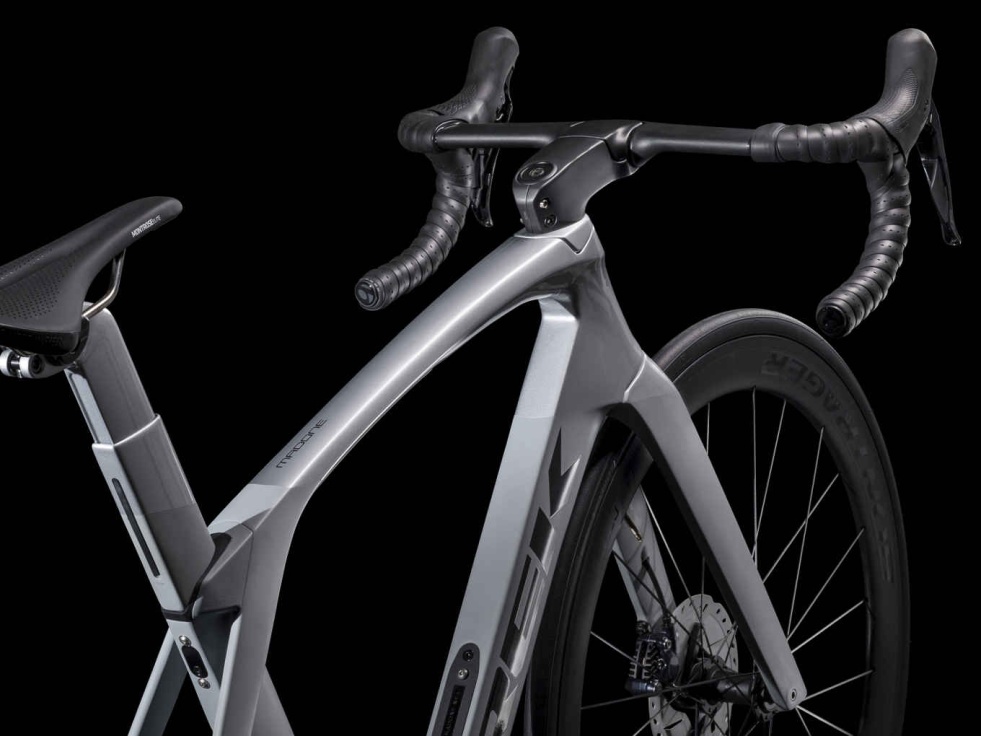 Karbonové vlákno OCLV 700 vyhrazené pro modely Madone s aerodynamickým tvarem, nízkou hmotností a špičkovou kvalitou jízdy. Aerodynamický rám, hydraulické diskové brzdy a závodní řazení, díky nimž bude vaše jízda výjimečně rychlá.