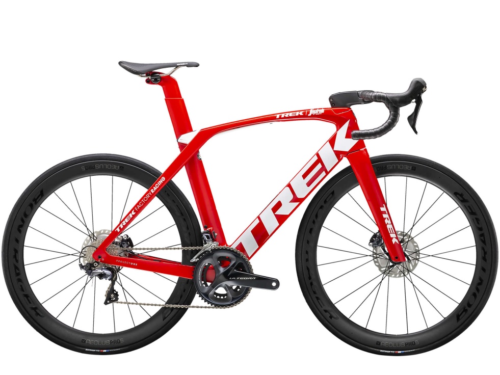 Lehký karbonový rám OCLV řady 700 s aerodynamickým profilem trubek Kammtail Virtual Foil a odpružením IsoSpeed na horní trubce tlumícím vibrace, celokarbonová vidlice KVF pro kotoučové brzdy, nastavitelná aerodynamická řídítka a představec, pohon 2x11 Shimano Ultegra, kola Bontrager Aeolus Pro 5 Disc umožňující použití bezdušových plášťů, mikronastavitelný sedlový nástavec Madone a hydraulické kotoučové brzdy Shimano Ultegra s úchytem Flat Mount.