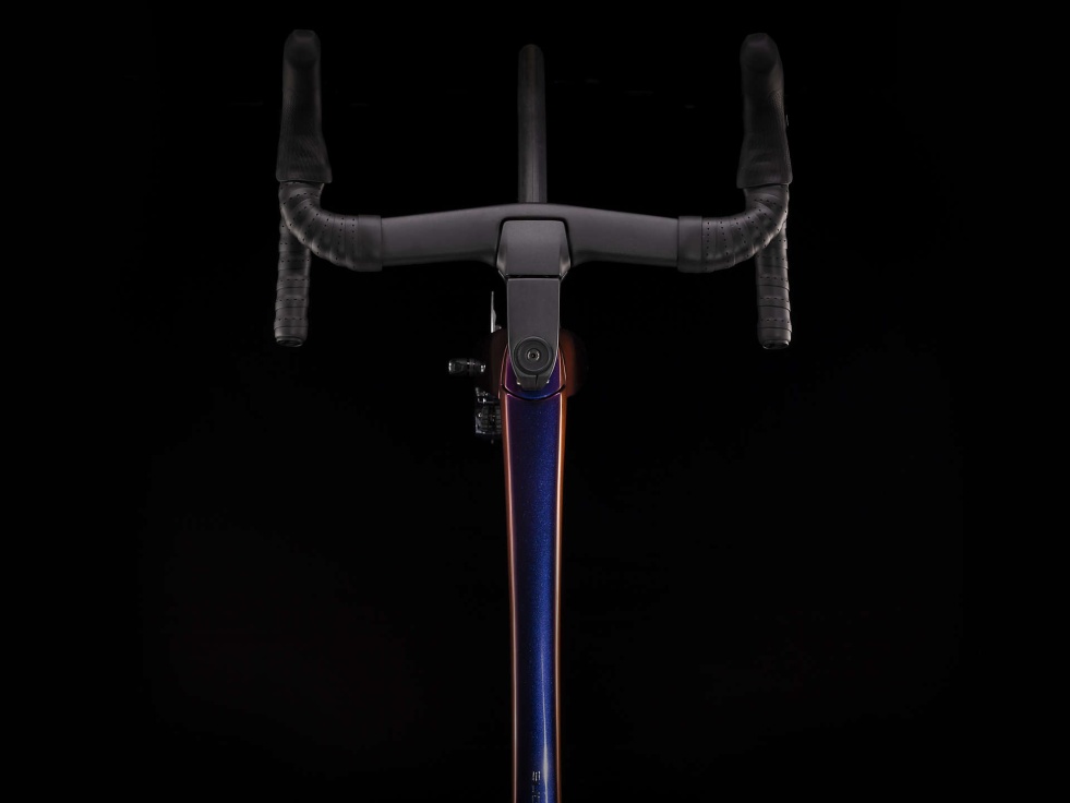| Řidítka | Nastavitelná aerodynamická řídítka Trek Madone VR-CF, karbon OCLV, skryté vedení lanek, dosah 93 mm, oblouk 123 mm. |