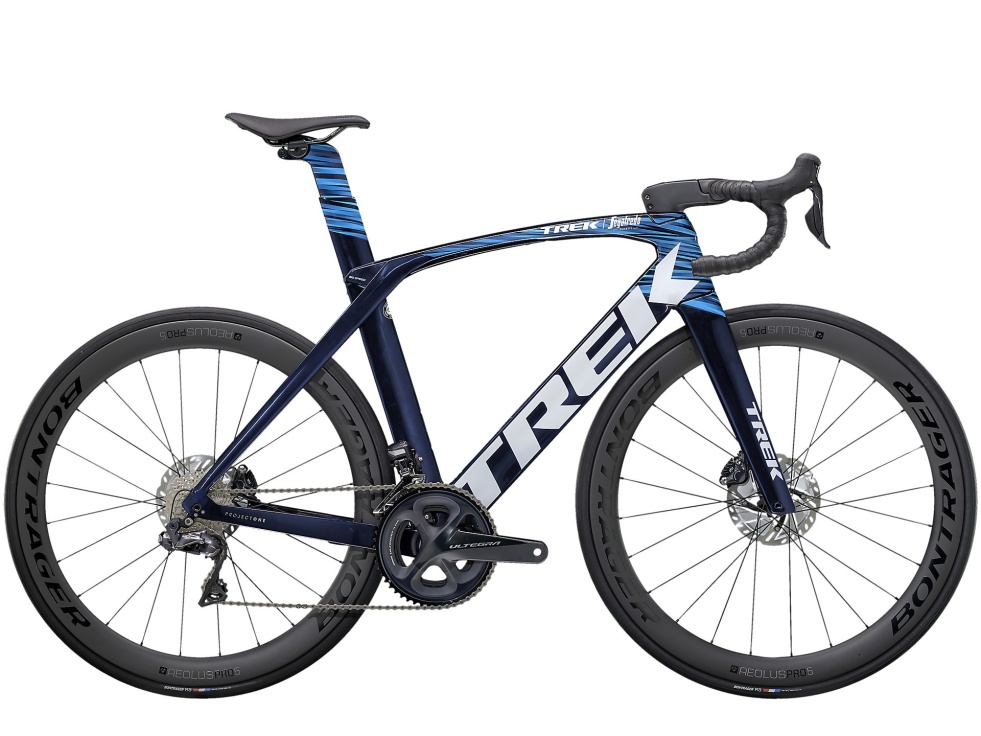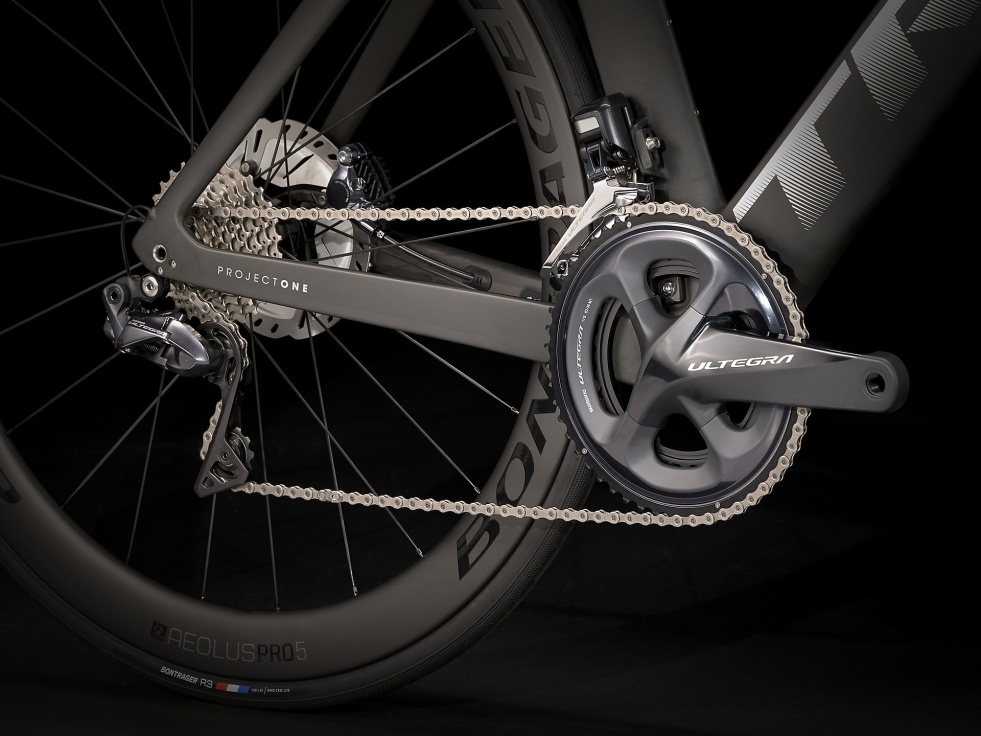 Náš nejlehčí rám z materiálu OCLV Carbon řady 800 s aerodynamickým profilem Kammtail Virtual Foil, nastavitelným prvkem IsoSpeed na horní trubce pohlcujícím vibrace a skrytým vedením kabeláže. Dál ještě elektronické řazení Shimano Ultegra Di2 2x11, hydraulické kotoučové brzdy s úchyty Flat Mount, karbonová kola Bontrager Aeolus Pro 5 připravená na bezdušový systém a nastavitelná aerodynamická řídítka a představec.